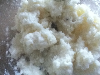 Start with the mashed potatoes in a bowl.