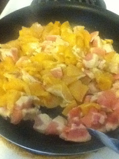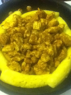 Now gently add the pineapple back into pan, I like to slide it around the edges to ensure more contact with pan/meat.