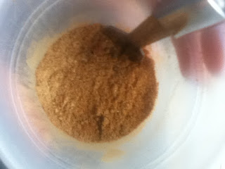 In a small glass, or cup place all the spices and stir until well blended, set aside.