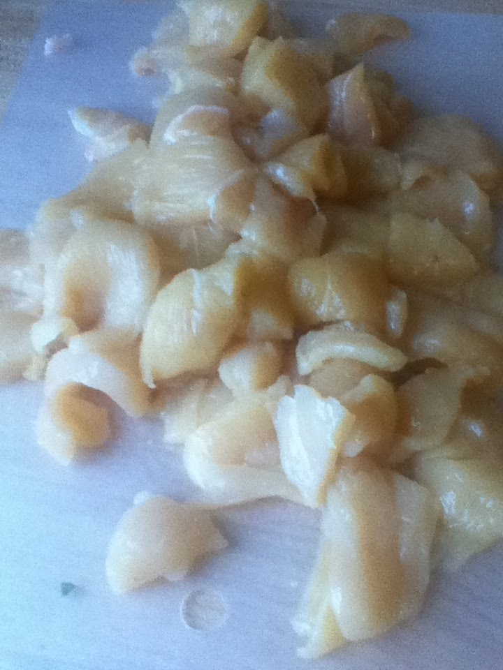 Prepare pork and chicken by cutting cutlets/breasts into pieces roughly 1" to 1 1/2" square, just try to keep them the same size.