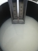In a sauce pan over medium heat combine, water, milk, sugar, salt and bring to 115 degrees, remove from heat