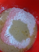 In a large mixing bowl place flour, make a divot in the middle of the flour
