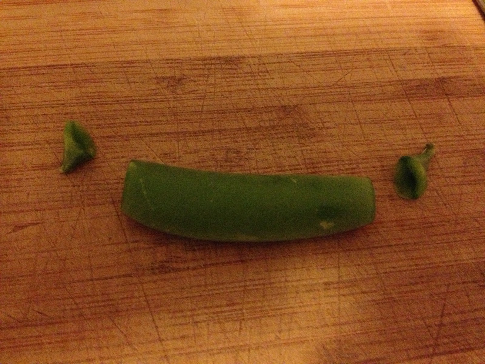 While this heats up, remove the ends of your peas. This will allow flavors to fully infuse peas.